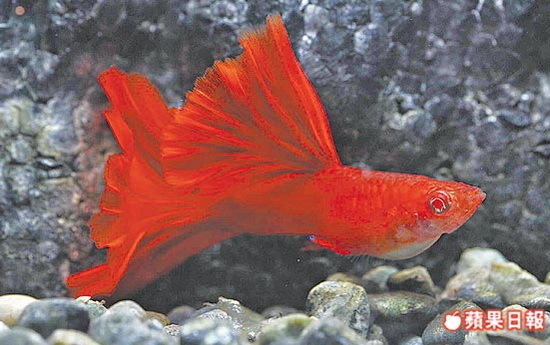 ‧圖說:姚瑞瑋以全紅白子孔雀魚獲世界大賽總冠軍。圖為同種的全紅白子孔雀魚。(圖片取自蘋果電子報)