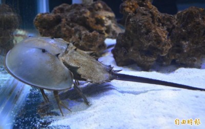 ‧有3億年的活化石「鱟魚」也能養殖成功(記者葉永騫攝)