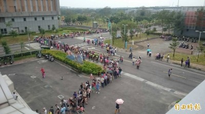 ‧農科水族展示中心超夯,假日擠進上萬人,民眾大批長龍等待入場(記者葉永騫攝)